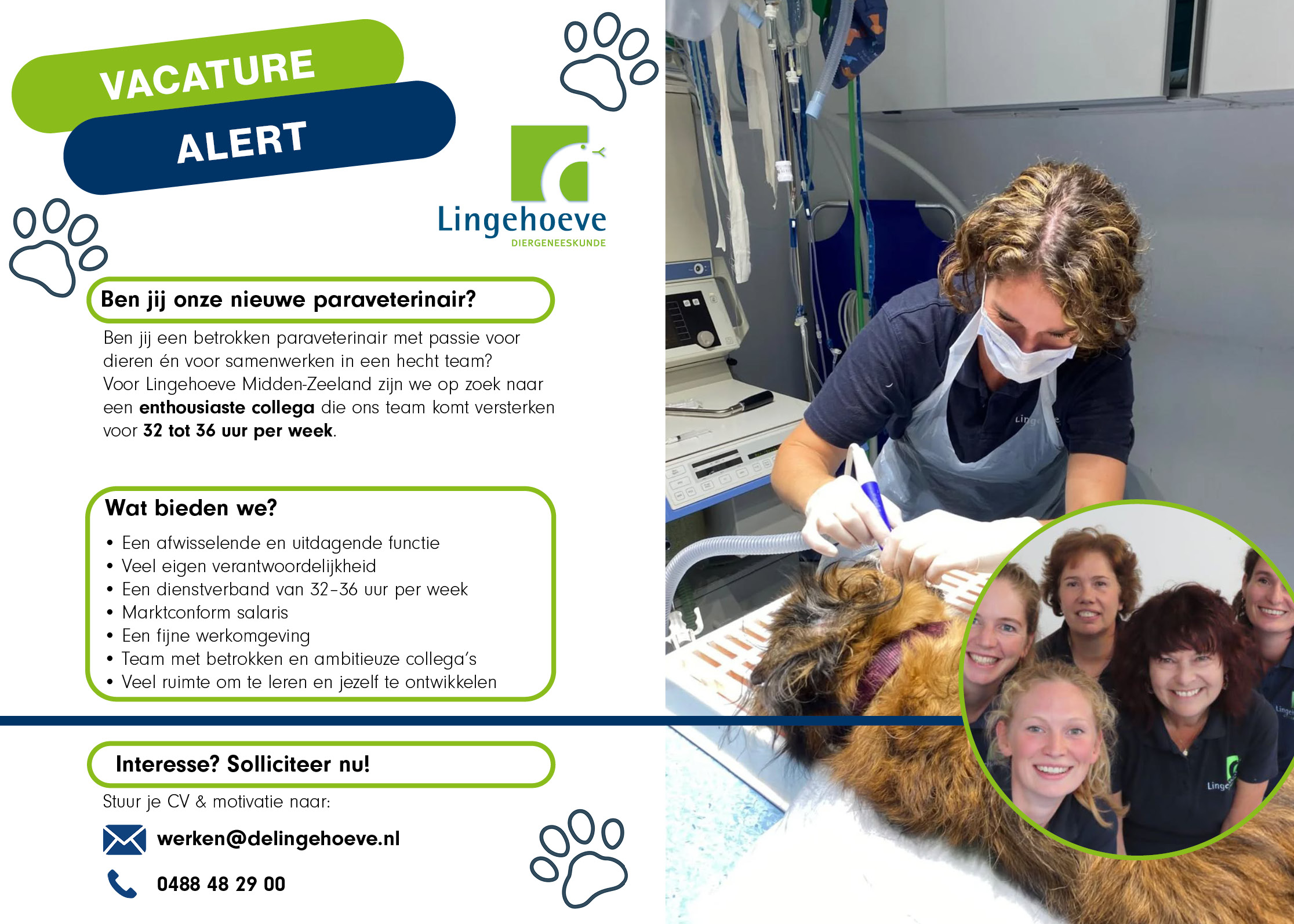 We zoeken een paraveterinair die energie krijgt van een dynamische praktijk en graag de handen uit de mouwen steekt. Herken jij jezelf hierin?